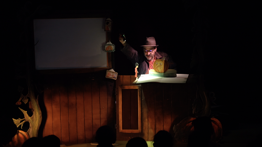 Cornebidouille de Magali Bonniol et Pierre Bertrand, ça vous parle ? Non ? Voici donc la sorcière la plus obstinée de la littérature jeunesse, prête à tout pour forcer le petit Pierre à avaler sa soupe. Sauf que Pierre est bien plus futé qu’elle, et son ego la piège chaque fois. Cette lecture vous propose les deux premières aventures enchaînées : Cornebidouille et La vengeance de Cornebidouille. David Verlet, interprète et créateur de cette adaptation en lecture théâtrale, ouvre une porte secrète et imagine une histoire dans l’histoire. Les personnages glissent d’une minuscule échelle à une immense, portés par des décors pop-up qui bousculent les proportions. Pop-up inspirés de l’œuvre originale, pop-up dessinés par David Verlet : l’alternance crée le rythme et met en lumière les scènes ajoutées. Le vidéomapping vient souder l’ensemble et amplifier la magie de ce conte incontournable qui s’anime en direct devant le public.