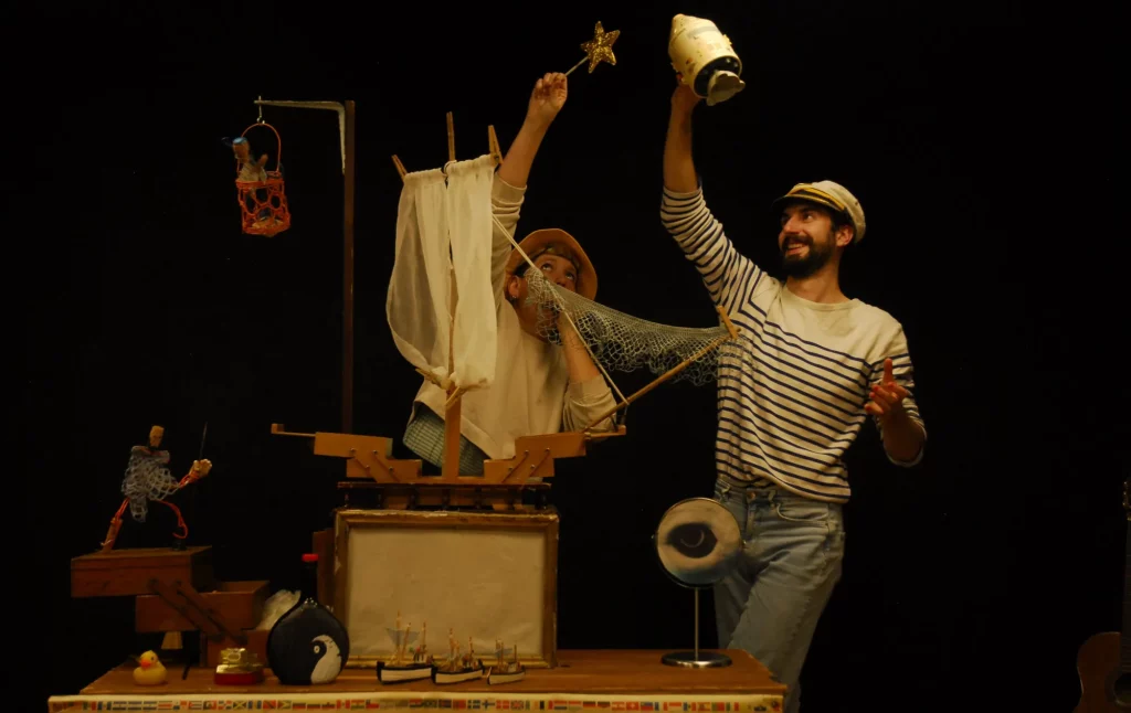 Voici la légendaire et tragique histoire de La Baleine Moby Dick et du Capitaine Achab revisitée en théâtre d’objet, présentée aux enfants comme aux adultes par deux marins loufoques et excentriques.